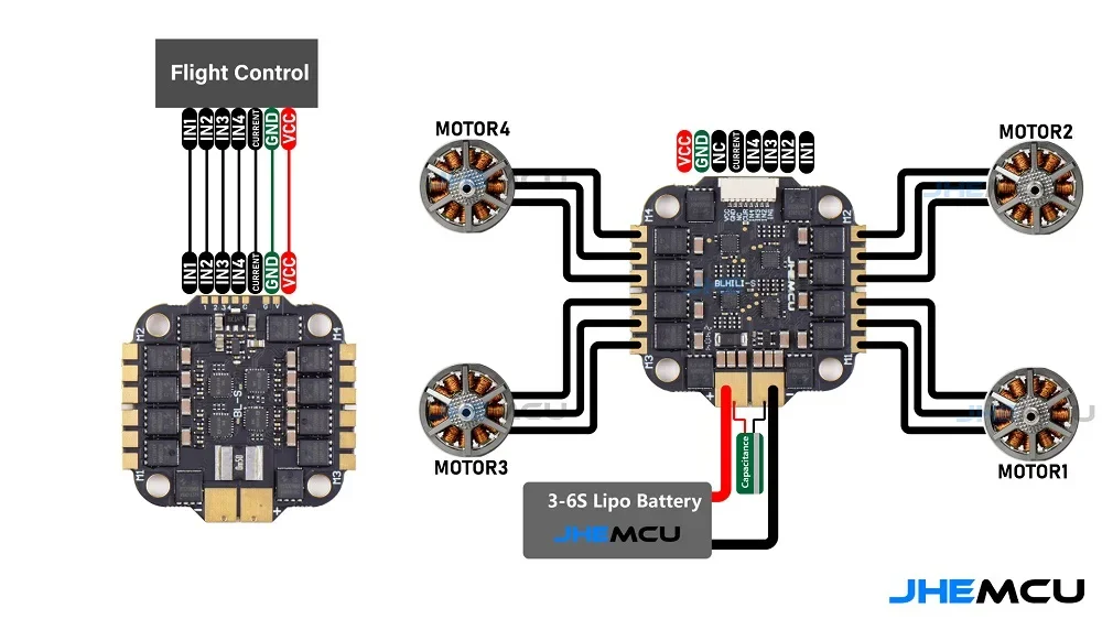 JHEMCU Ruibet 50A / 60A / 65A 3-6S Dshot600 BLHELI_S 4In1 ESC Built - in TVS Tube Pole Distance 30.5X30.5Mm for RC FPV Drone